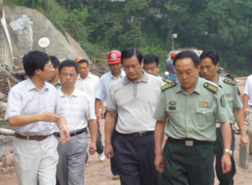 舒志民及军分区领导一行从102口进入洞内,通过穿廊,视察了洞内各个部位及设施的施工情况和管道安装情况。在听取了人防办刘主任对531工程的详细介绍后,舒副市长表示,前期中铁四局项目部在抓安全质量控制工作方面做得不错,希望在进度上要克服不利因素,确保安全优质地完成人防工程。