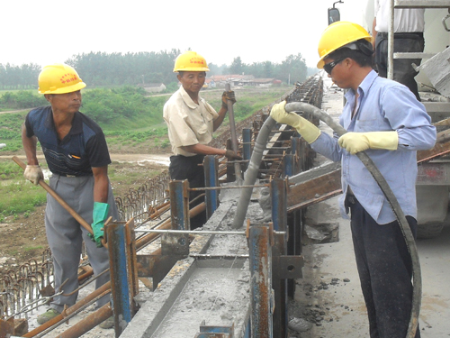 本网长丰讯 “日月忽其不淹兮,春与秋其代序”,半年的时间,弹指一挥间就毫无声息的流逝,一年一度的国庆、中秋佳节又到了。但是对于我们铁路建设者来说,为了能使合蚌客专早日通车,在国庆、中秋佳节万家团圆的时候,我们有的只是对工作的热情和永不满足的态度。合蚌客专三分部桥面系防护墙施工已经进入最后冲刺阶段,尽管最近天气炎热,最高温度达到33℃,桥面上温度高达40℃,但是分部上至项目经理,下至农民工兄弟,每一个人都憋足了劲,争先恐后往前冲!力争在中秋佳节之前完成所有防护墙施工,打赢分部防护墙施工的攻坚战。