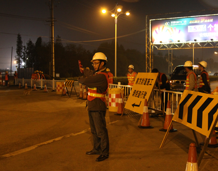 此次现场封路从开始到结束,仅用43分钟,速度之快、效率之高,得益于分部充分的准备工作:第一,召开封道专题会,分部领导精心部署每个封路工作环节,层层落实,责任到人;第二,严格落实道路封闭审批手续,并连续5天在合肥晚报刊登封路公告,为随后的封路工作提供了便利;第三,根据道路实际状况,修建东侧导行便道分流交通流量,并提前将封路护栏、施工锥、防撞桶、安全警示牌等送到指定位置,保障了交通秩序的正常运行。