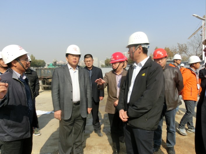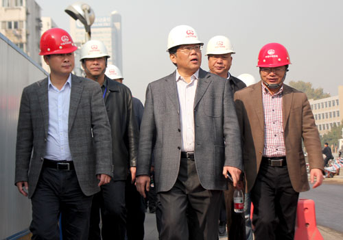 11月19日,局总经理许宝成,副总经理张建场,在四公司总经理杨红卫的陪同下,到南京江东路改造工程一经理部工地检查指导工作。