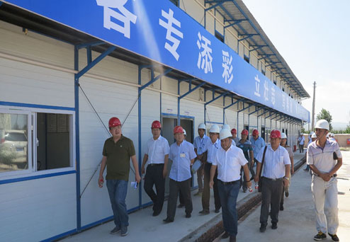 7月初进场伊始,二工区就多方位筹划,一是详细了解工地及拌和站的选址,同时积极与当地政府接触迅速拿下拌和站用地;二是积极组织队伍进场筹建,为各方面工作打好基础;三是认真学习业主关于拌和站建设的标准化管理标准,按照要求详细认真的对拌和站内办公区、停车区以及生活区进行合理的规划。在建站过程中,全体人员拧成一股绳,分秒必争,克服了时间紧,任务重,干扰多等多重困难,仅用15天就完成了场地平整、设备安装、制度建设等工作,高标准的完成了拌和站的建设任务。
