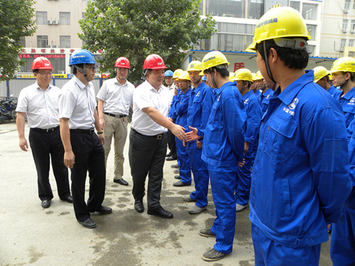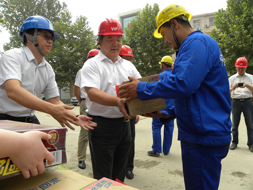 6月26日上午,局董事长、党委书记张河川在局副总经济师徐亦辉、宣传部部长许国、四公司董事长、党委书记胡世山的陪同下,来到四公司石家庄地铁项目管段长城桥站工地,看望酷暑奋战在施工一线的员工,并赠送清凉饮品。