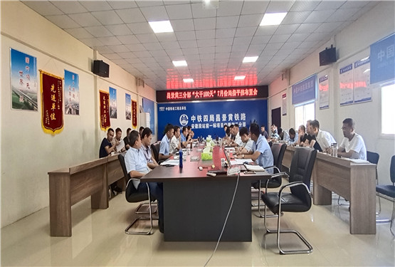 8月3日上午,局昌景黄铁路站前一标指挥部指挥长杨翼一行到三分部检查指导工作,召开“大干100天”七月份平推布置会,总结七月份的施工生产工作,并且对接下来的工程进度进行布置安排。项目部领导班子、各部门负责人参加了会议。