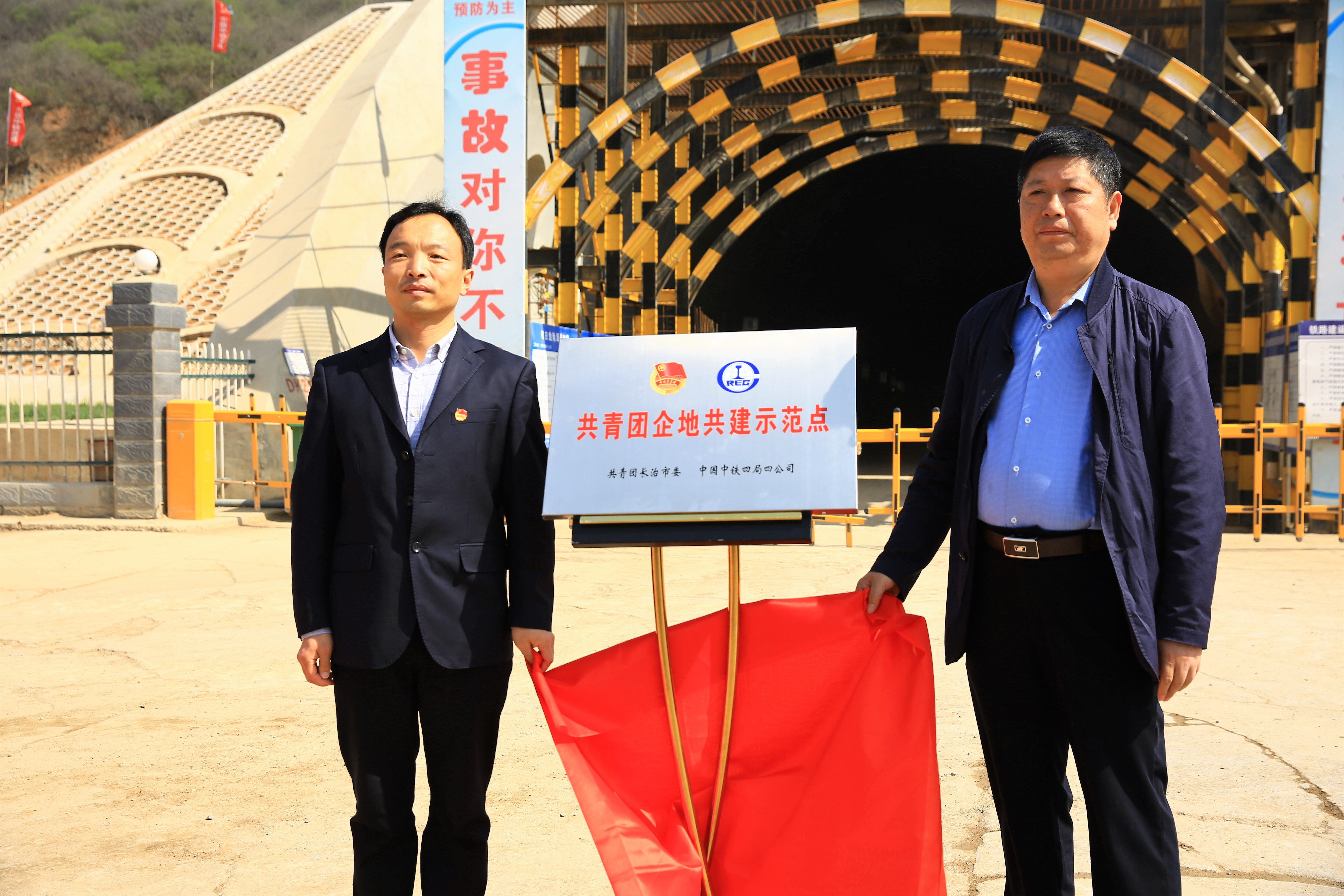 4月27日,长治团市委书记张登科一行5人到太焦铁路老顶山隧道施工现场举行“共青团企地共建示范点”揭牌仪式,公司党委副书记程晓涛参加了此次活动。