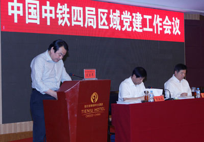 9月11日至13日,中国中铁四局区域党建工作会在内蒙古鄂尔多斯召开。局党委副书记、纪委书记资宝成主持会议,股份公司党委组织部长丁荣昌,局党委书记、董事长张河川,分别做了重要讲话。四公司党委书记、董事长徐亦辉,组织部长付建参加了会议。