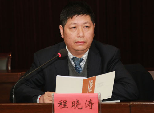公司工会主席程晓涛在会上讲话
